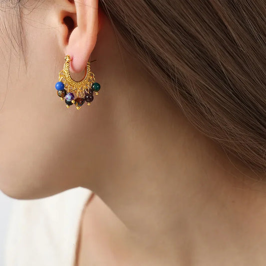 Gold-Plated U-Shape Agate Hoop Earrings