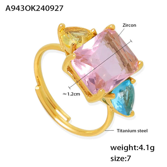 Gold Geometric Zircon Open Ring