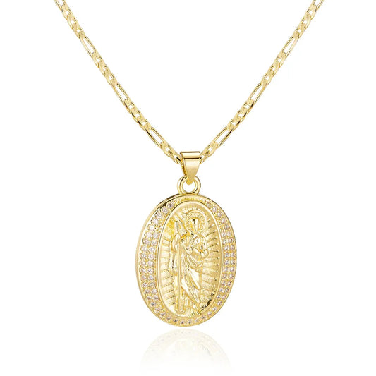 Gold Plated Virgin Mary Zircon Pendant Necklace