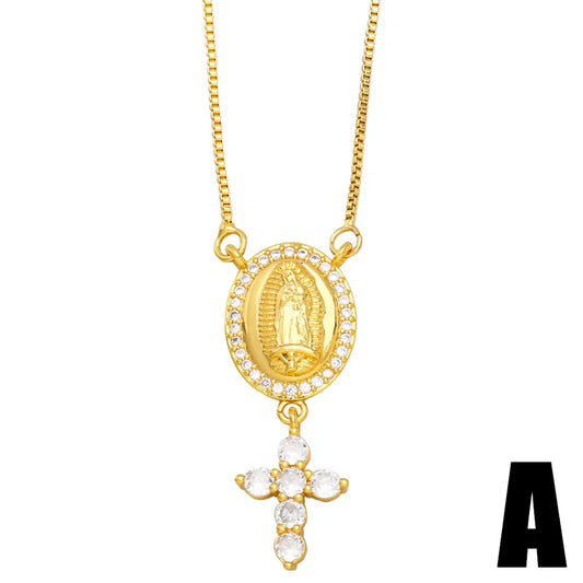 Gold-Plated Zirconia Virgin Mary Cross Pendant Necklace