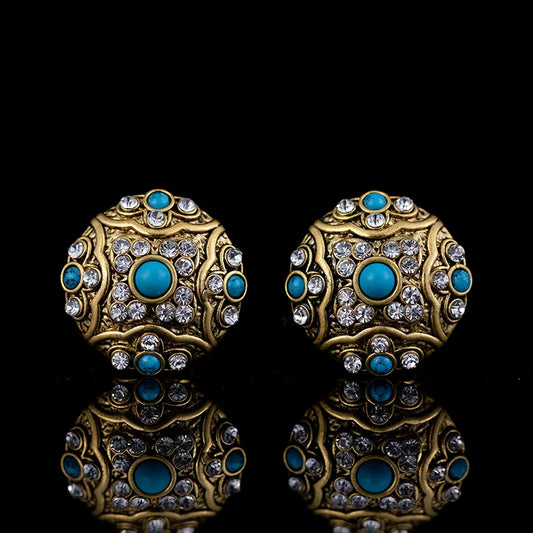 Gold Round Rhinestone Earrings