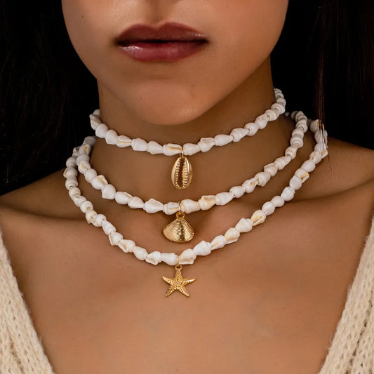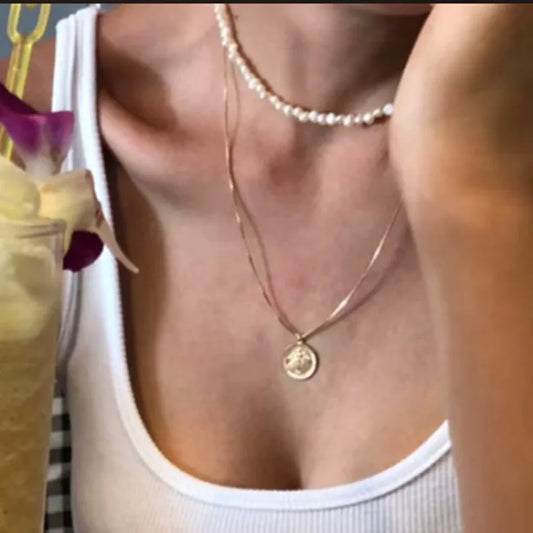 Gold-Plated Irregular White Pearl Pendant Necklace