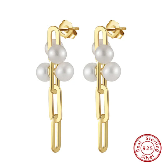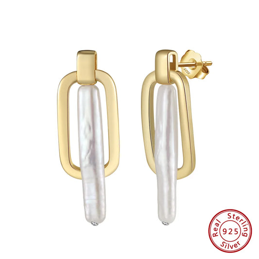 Gold-Plated Geometric White Pearl Earrings