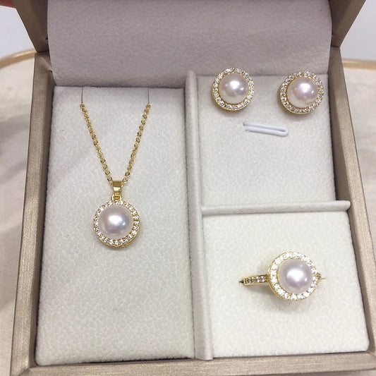 White Freshwater Pearl Pendant, Earrings & Ring Set