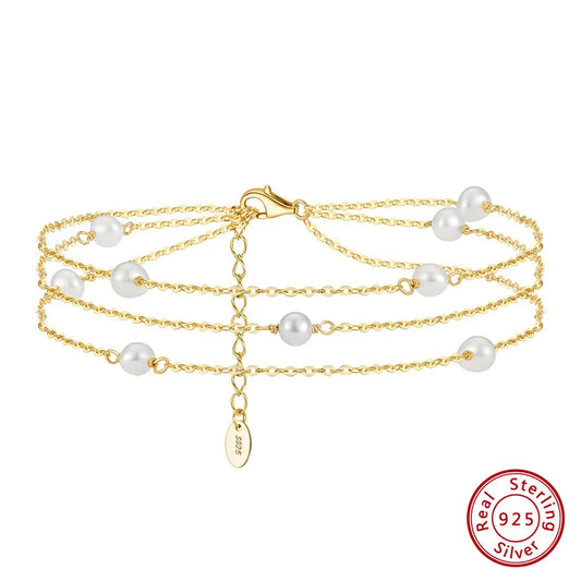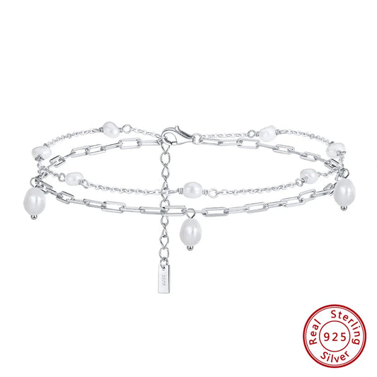 925 Sterling Silver White Freshwater Pearl Anklet