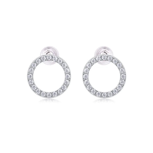 925 Sterling Silver Clear Moissanite Circle Stud Earrings