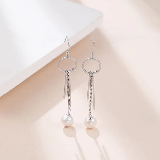 Sterling Silver Pearl Tassel Drop Earrings