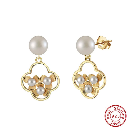 Sterling Silver White Pearl Flower Drop Earrings