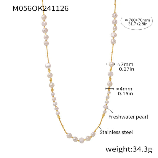 White Baroque Pearl Stainless Steel Necklace