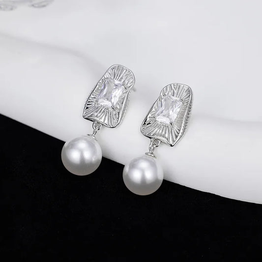 Sterling Silver White Pearl Geometric Drop Earrings