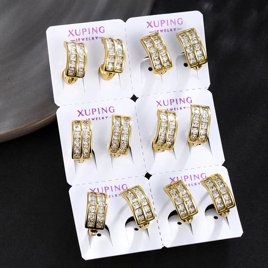 6-Pair Gold & Platinum Geometric Zirconia Earrings