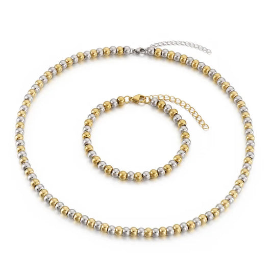 18K Gold-Plated Stainless Steel Bracelet & Necklace Set