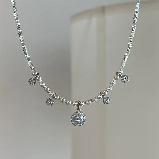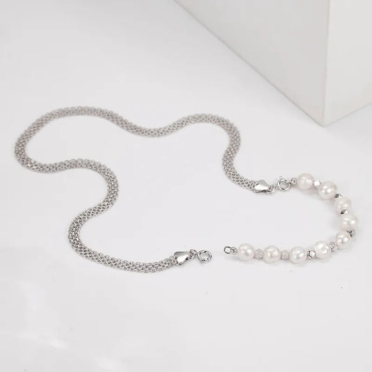 14K Gold White Freshwater Pearl Clavicle Necklace