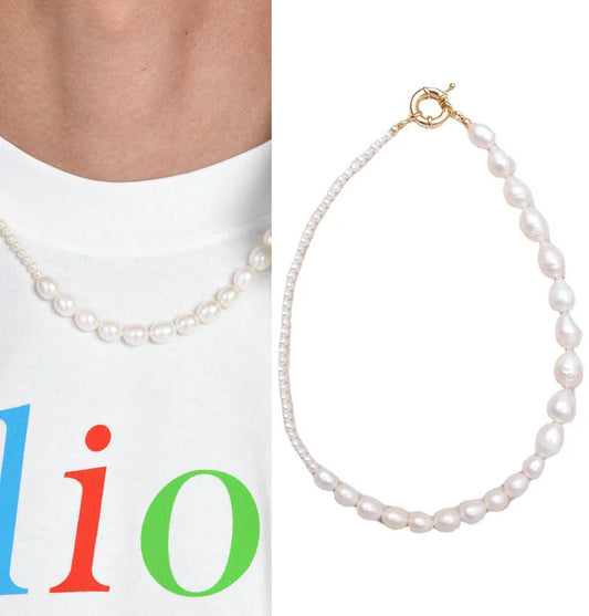 14K Gold White Freshwater Pearl Clavicle Necklace