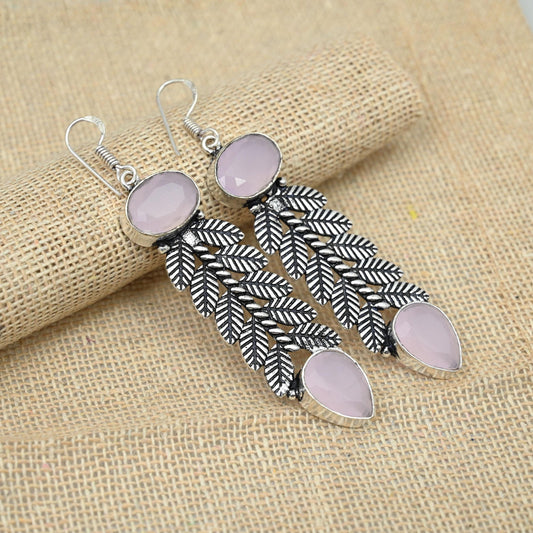 Pink Chalcedony Sterling Silver Dangle Earrings