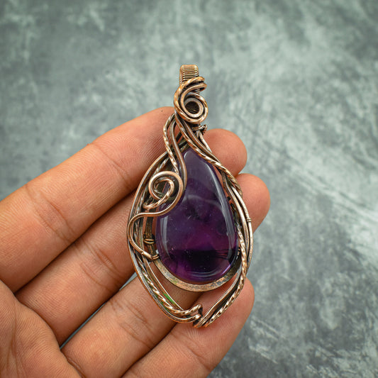 Purple Amethyst Gemstone Copper Guitar Pendant