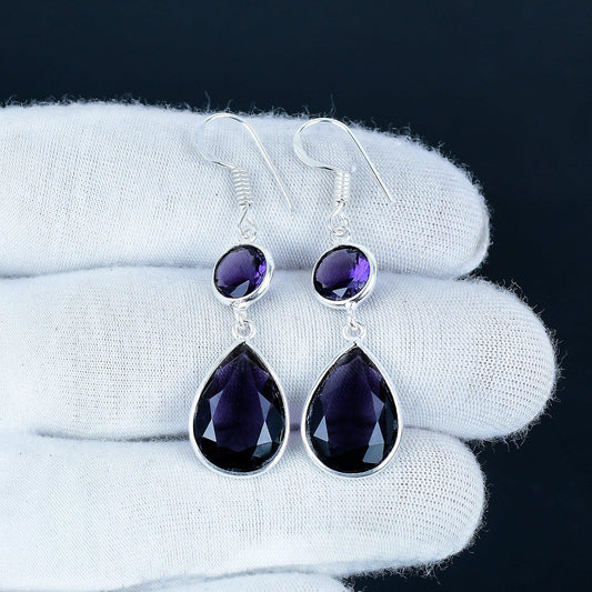 Purple Purpurite & Amethyst Sterling Silver Dangle Earrings