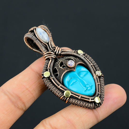 Blue Flash Labradorite & Moonstone Gemstone Pendant