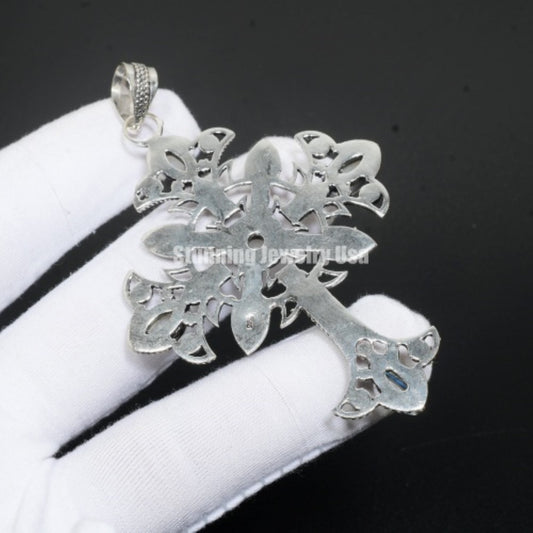 Rainbow Moonstone Gemstone Sterling Silver Cross Pendant