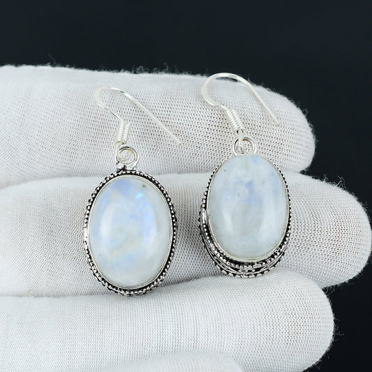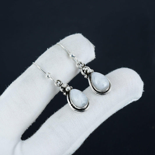 Rainbow Moonstone Gemstone Silver Earrings