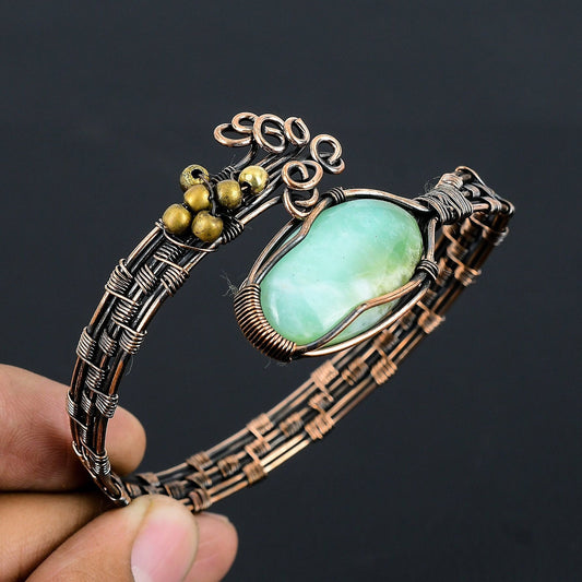 Green Swiss Opal Gemstone Copper Cuff Bracelet
