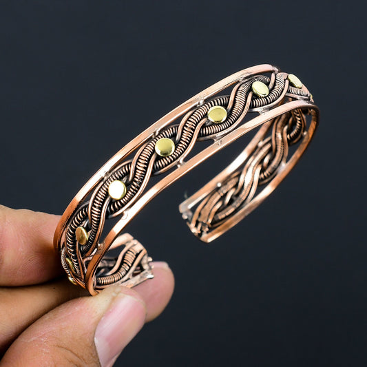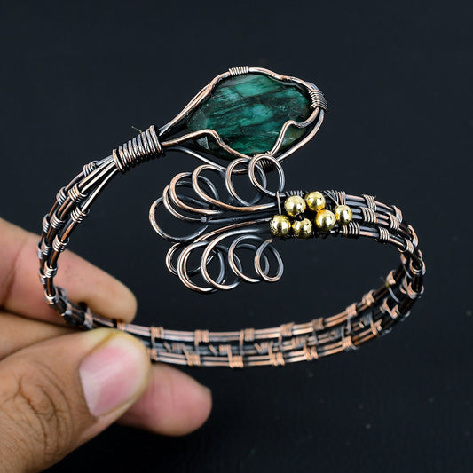Green Malachite Gemstone Copper Cuff Bracelet