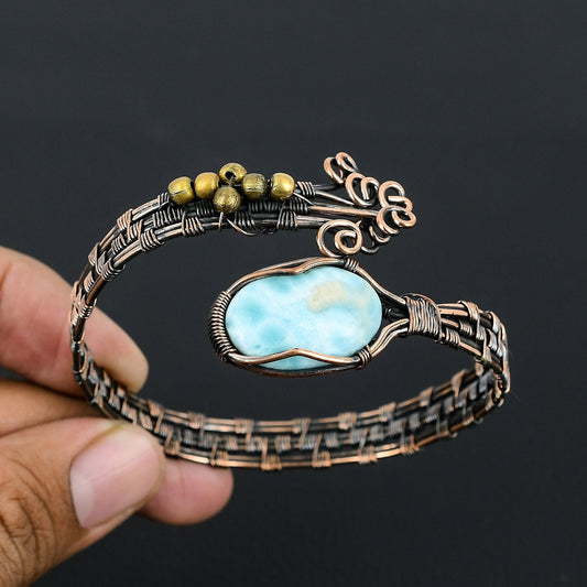 Blue Larimar Gemstone Copper Cuff Bracelet