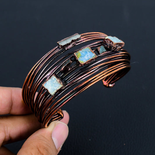 Green Turquoise Gemstone Copper Cuff Bracelet