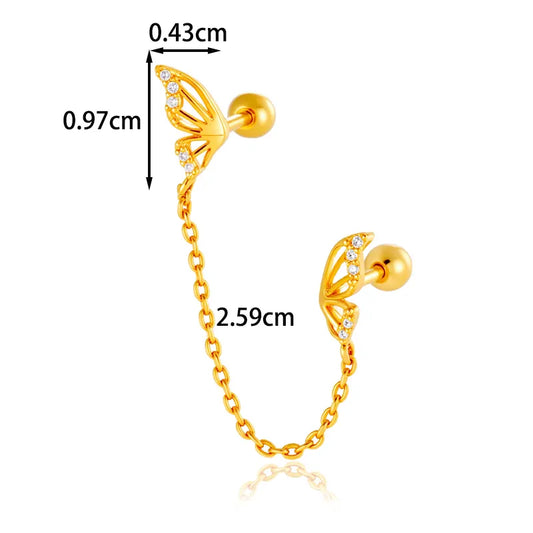 18K Gold Plated Stainless Steel Heart Snake Butterfly Zircon Chain Jewelry Set