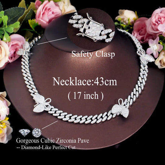 Copper White Gold Plated Rhodium Plated Inlay Butterfly Zircon Necklace
