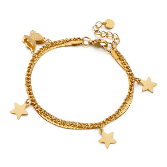 18K Gold-Plated Butterfly Pentagram Bracelet