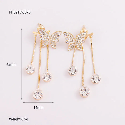 Gold Plated Butterfly Zircon Drop Earrings