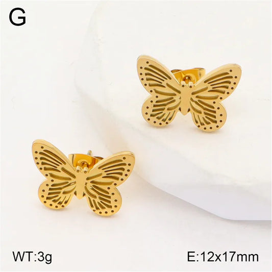 Gold Heart Flower Butterfly Stud Earrings