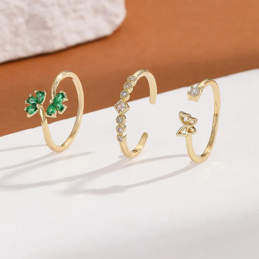 Gold Zircon Shamrock Butterfly Ring