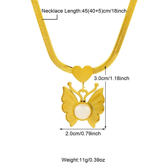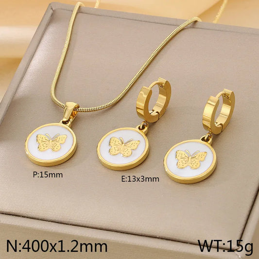 Gold Geometric Butterfly Charm Necklace & Bracelet Set