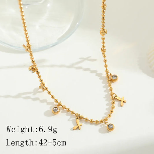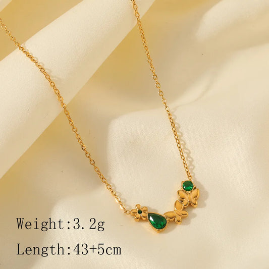 Gold Flower & Butterfly Zircon Charm Necklace