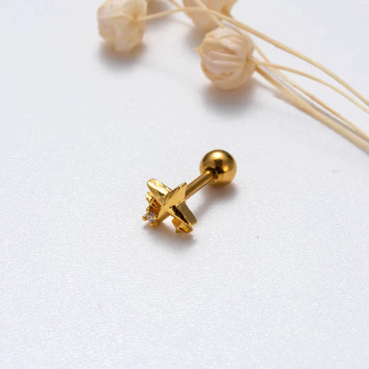 Gold Zircon Heart & Butterfly Cartilage Earring