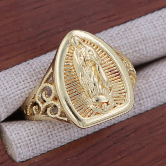 Gold Virgin Mary Heart & Butterfly Zircon Ring