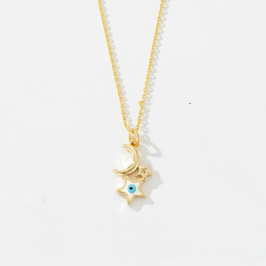 Gold Star & Moon Butterfly Zircon Pendant