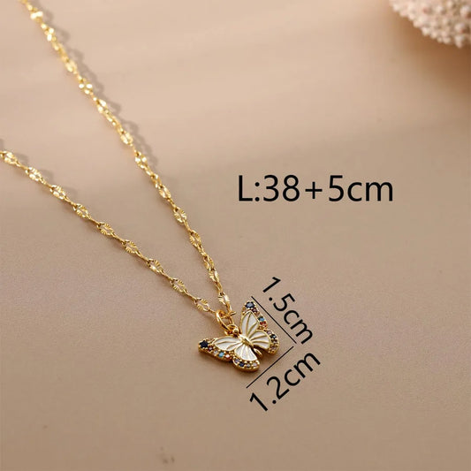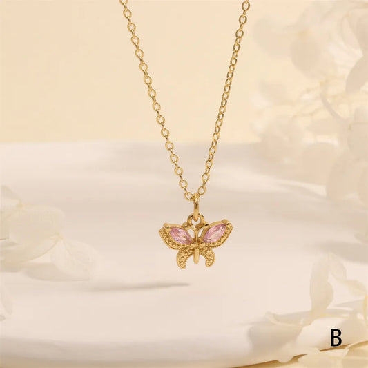 Gold-Plated Butterfly Zircon Pendant Necklace