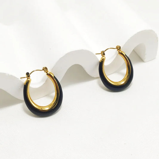 Gold Enamel Butterfly U-Shape Earrings