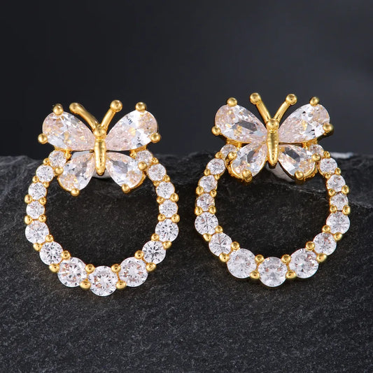 Gold-Plated Butterfly Zircon Ear Studs