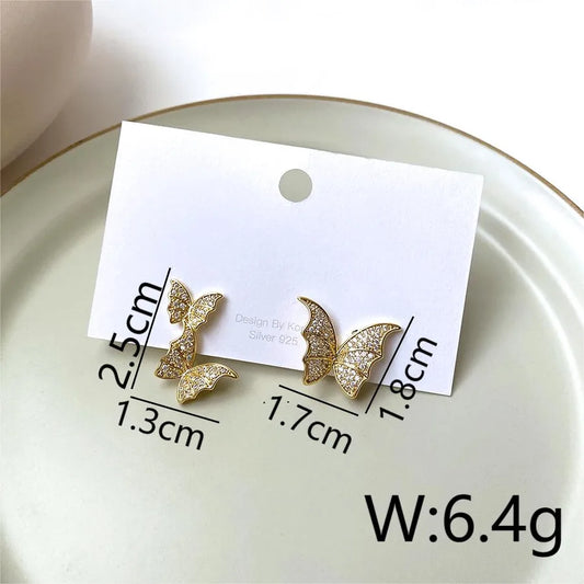 Gold Butterfly Zircon Stud Earrings