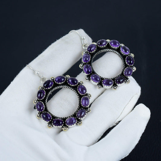 Purple Amethyst Sterling Silver Circle Earrings