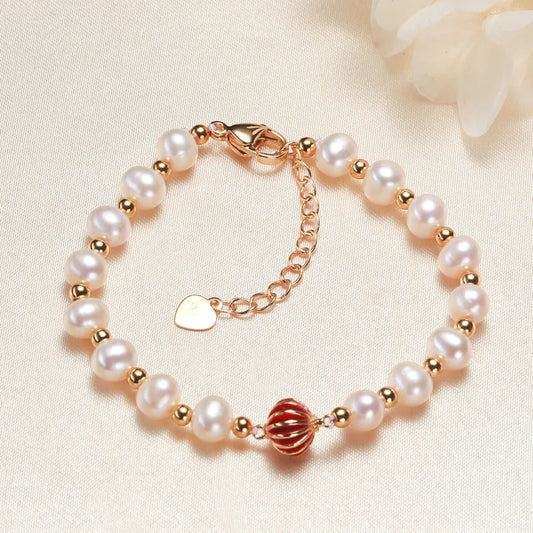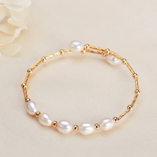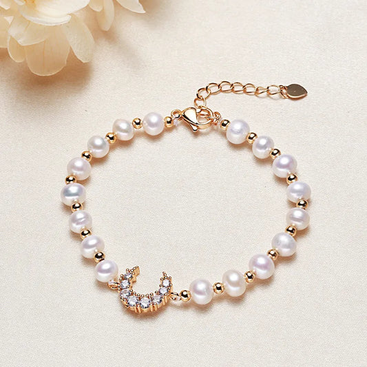 White Freshwater Pearl & Sterling Silver Geometric Bracelet