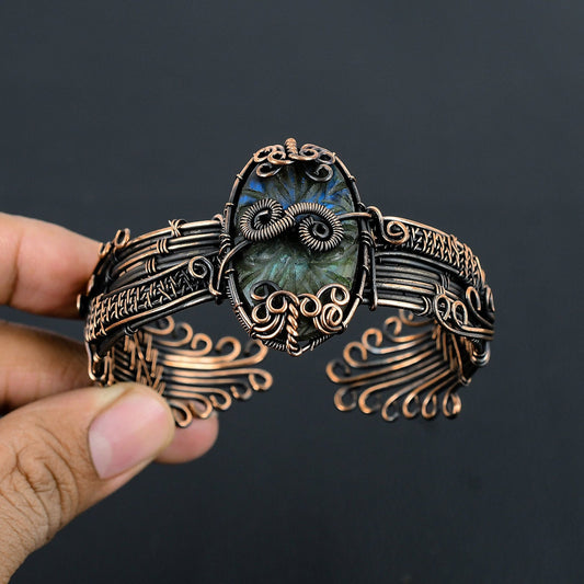 Blue Labradorite Gemstone Copper Cuff Bracelet