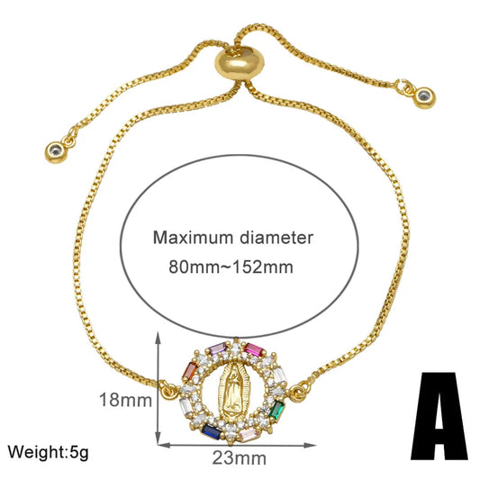 Gold-Plated Zirconia Virgin Mary Cross Pendant Necklace