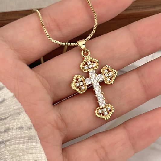 Gold Virgin Mary Cross Zirconia Pendant Necklace