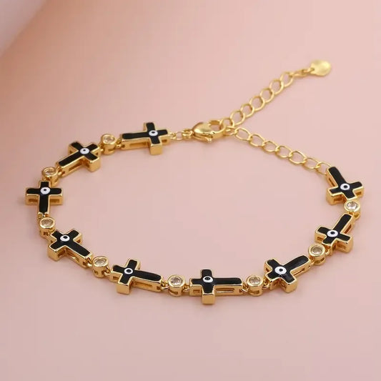 Gold-Plated Oval Cross Stainless Steel Bracelets