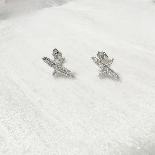 White Gold-Plated Sterling Silver Zircon Cross Stud Earrings